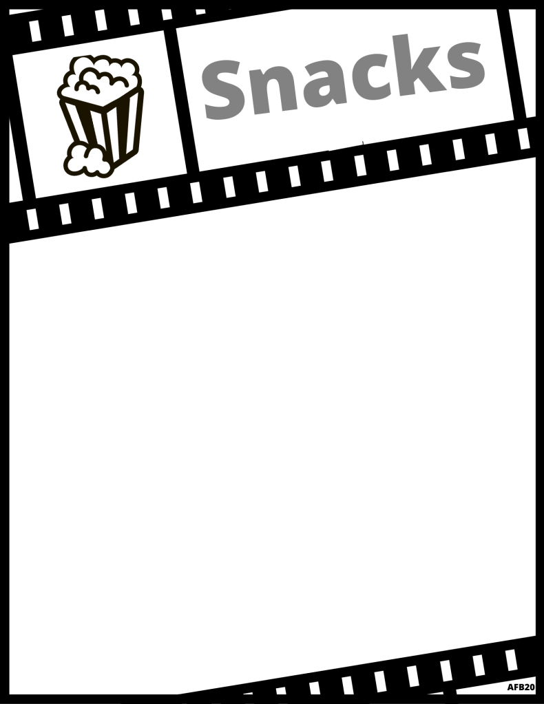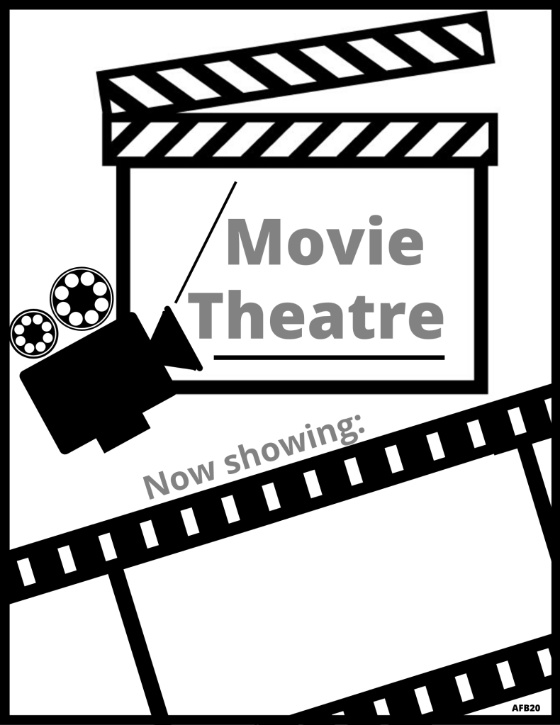 Have your child pick the movie and then write the movie in the above box, or if unable – adult can write. See our example above left.