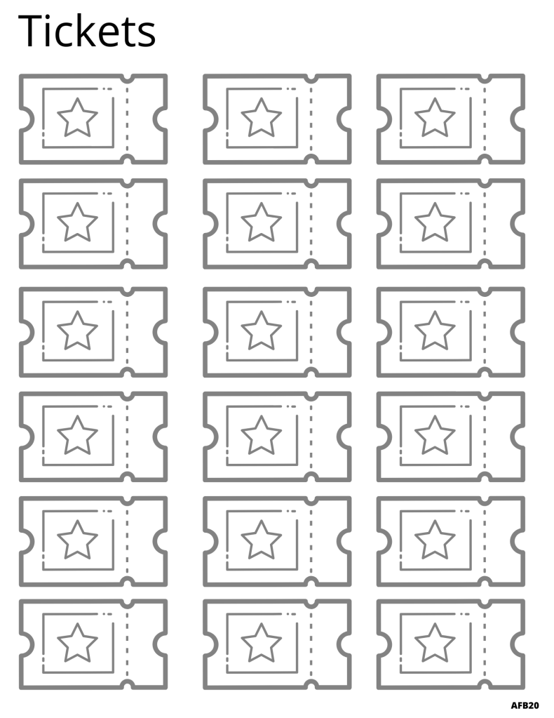 To practice cutting skills, have your child cut out the tickets. They can color them as well!