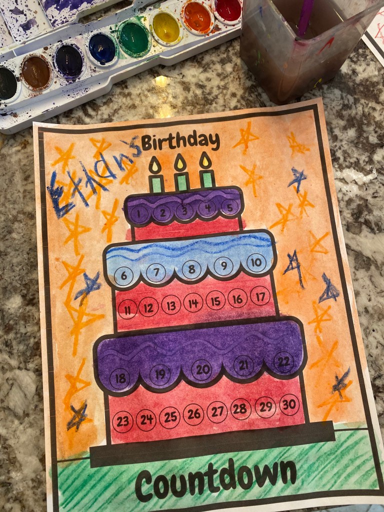Your child will start 31 days before their birthday and count backwards until they reach day 1. Then on their birthday they will have a completed birthday cake to enjoy/hang up for their birthday celebration.