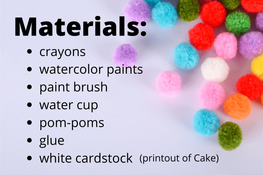 Have your child write their name and color the cake with crayons first. Then have them paint on top with watercolors. You can create patterns when coloring in/painting. Let dry once complete.