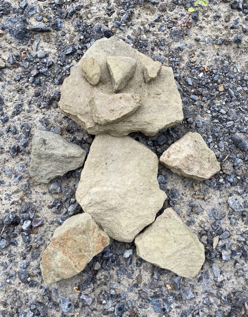 Step #2- Body: Find one big rock as the torso/body. Then find 2 arms and 2 legs. Assemble all together to make sure you/they like the finished look.