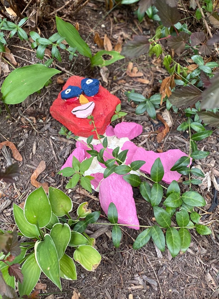 Meet Pinky! She lives in the front yard. She is 6 years old. Her favorite snack is the Hosta plants that are near by. Her favorite color is obviously pink.