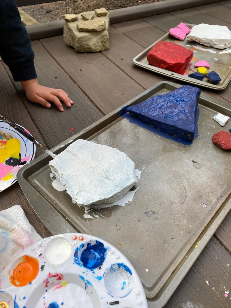 Note: This project was a multiple day process because we made several rock people. If you choose just to make one person, it can be done in a day.