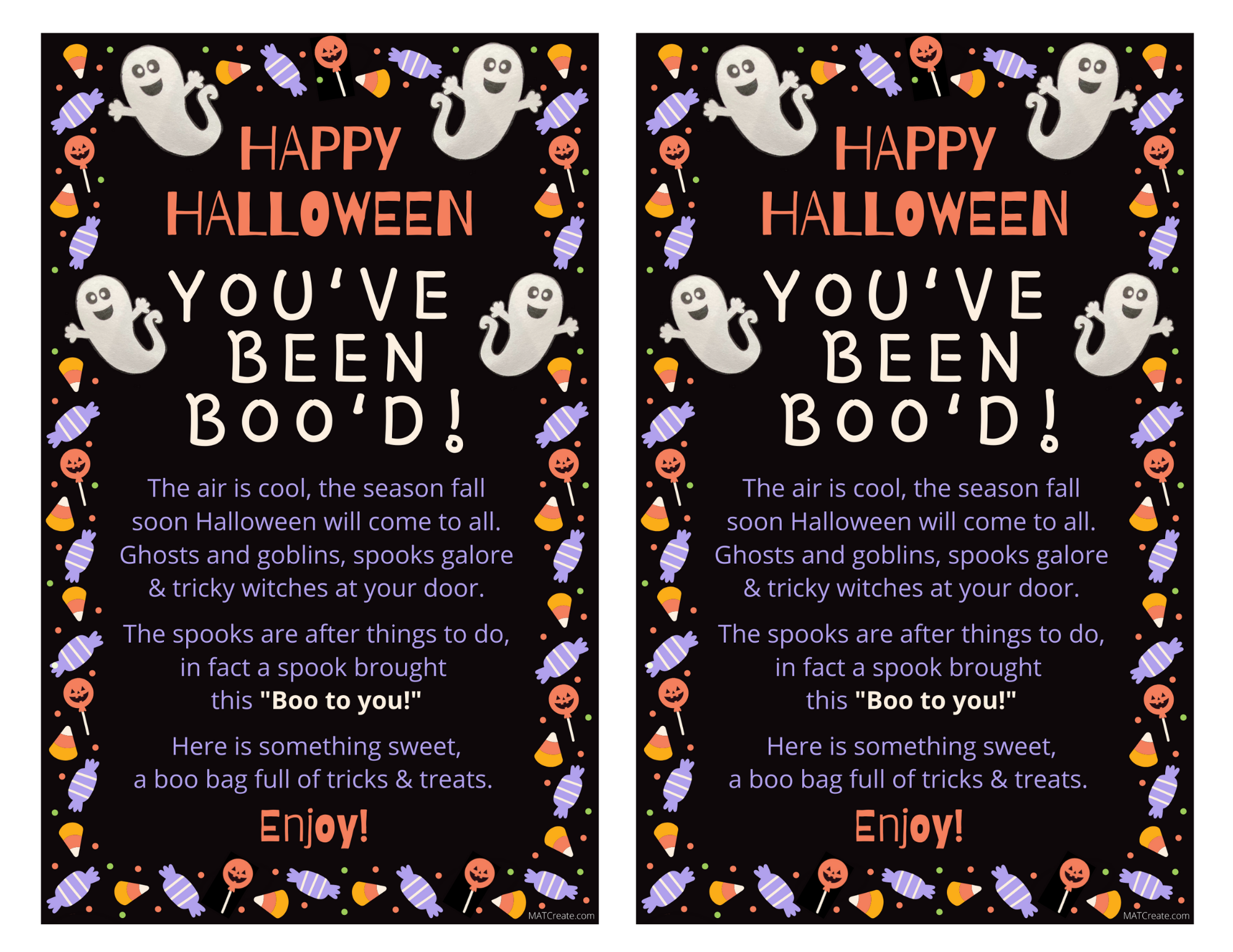 The traditional Boo Bags come with a sign that say you’ve “been boo-ed”, then the recipient places the sign in their window. That family then is expected to “boo” two more families by creating their own boo bags.