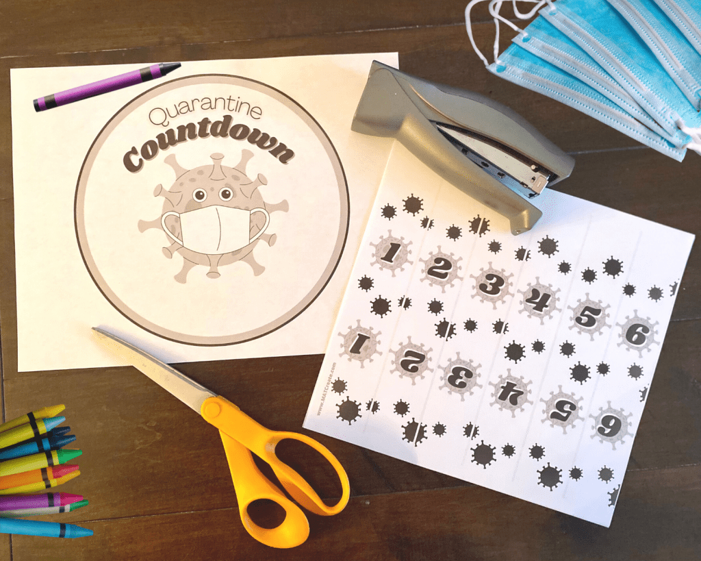 The quarantine requirement is different for everyone. I’ve included up to 12 days in the countdown. Print only what you need. I have also included blank strips. Use them to add more days or you can have your child write out the numbers to make them more involved with the creating process.