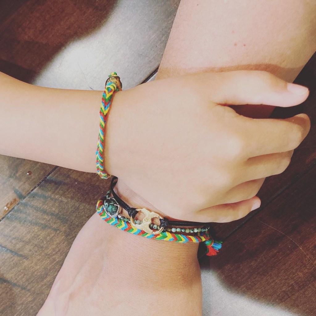 I was inspired to make these bracelets because of what my mother did when I was a child. When I was in early elementary school my mom would let me wear a piece of her jewelry, usually a bracelet, to remind me of her. I wanted to stay home with her and not go to school. So the solution was that I could take a “piece” of her with me to school. It had a comforting affect on me.
