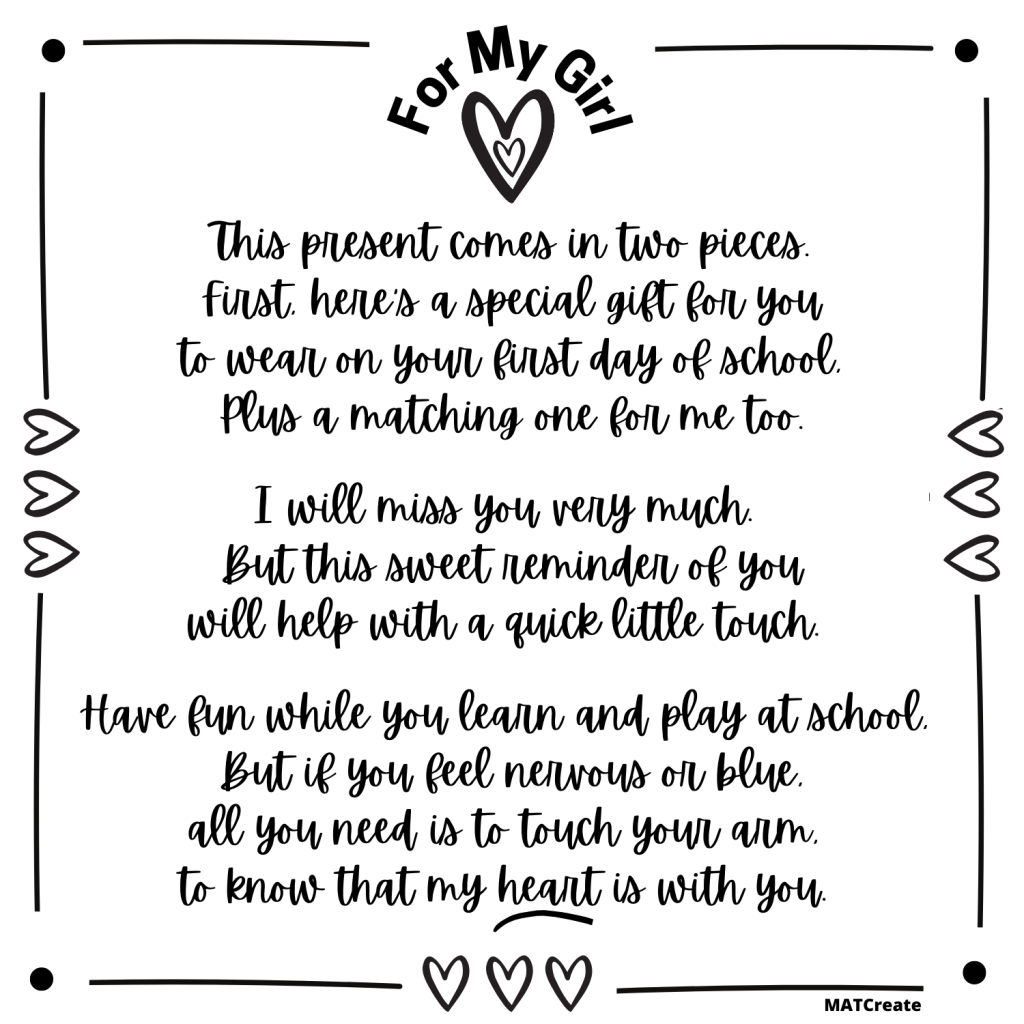 My daughter hasn’t been in school since last March (over 5 months). Since then she has been with me everyday. The transition back to school this year is more difficult due to of COVID. I wanted to make her a small gift for the first day of school to remind her of me and also something she could be excited about.