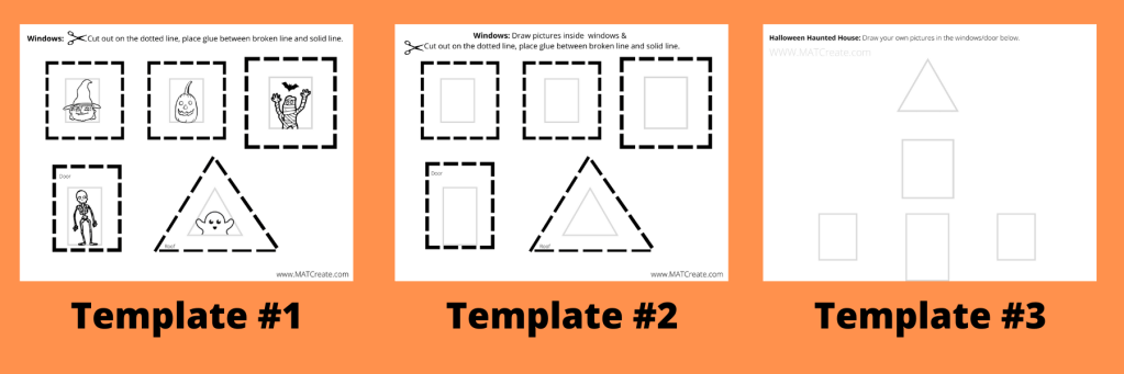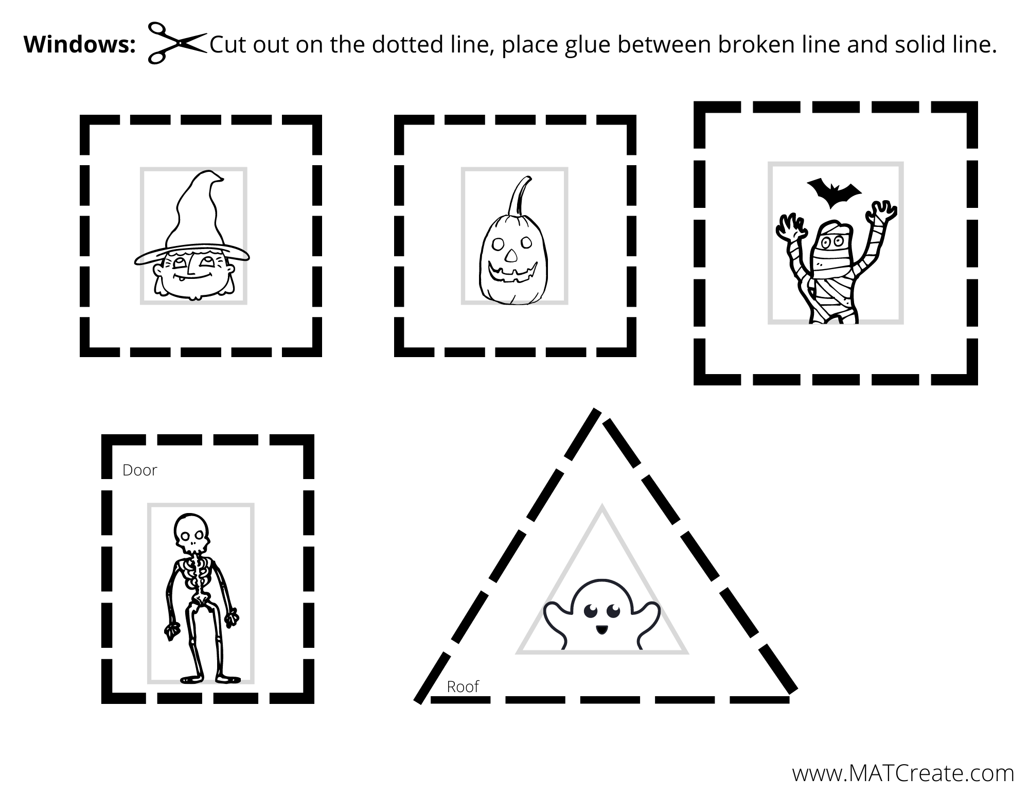 Note: This project can be differentiated by age. All children will need the Haunted House template. Choose one “inside template” based on skill level or what skills you want to review.