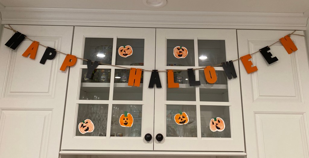*For the cards, we simply printed the apples on top of each other. The top pumpkin we just made with a paint brush (didn’t have an apple small enough). After dry, we added grass, created the faces, and outlined the pumpkins in sharpie.