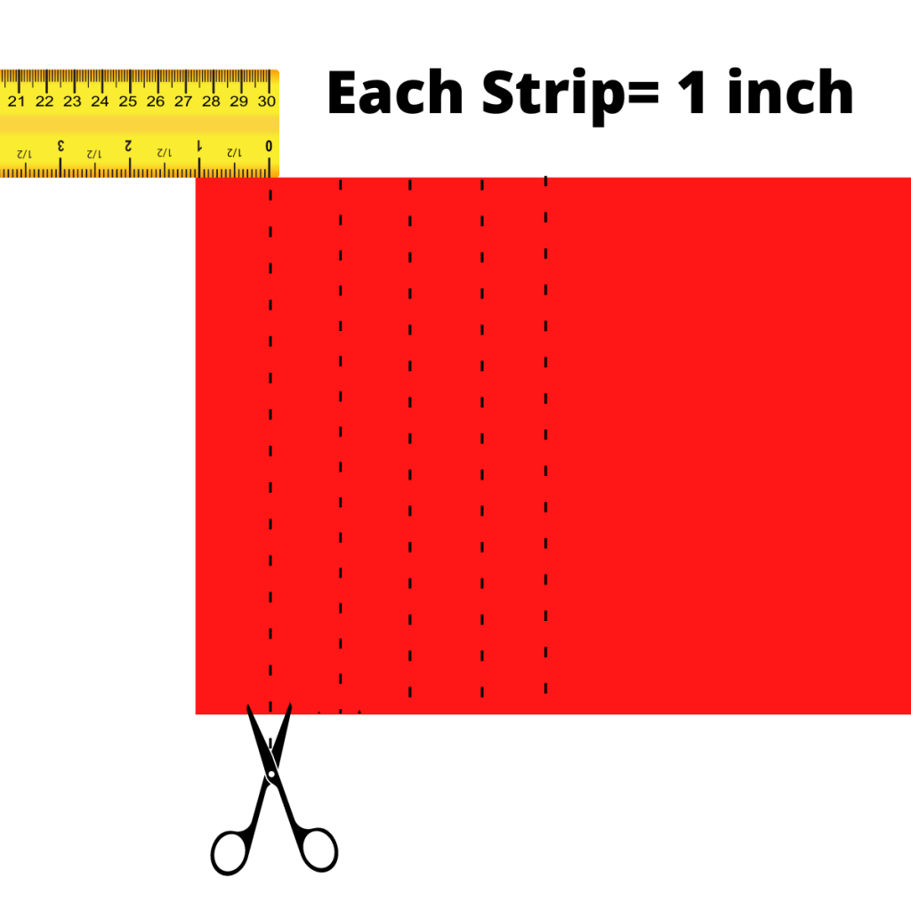 5.) Make the chain. Cut the red construction paper horizontally. See image below. Repeat with the green. You will need one strip for each day on the countdown. Putting the chain together: make an AB pattern with the red and green paper. Start by stapling the first circle (link) together, then place the next circle inside of it and repeat until done. You need one link for each day on the countdown.