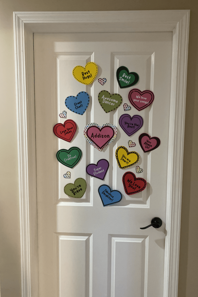 4.) Before February 1st, place their name heart on the center of their door and tell them its for a surprise.