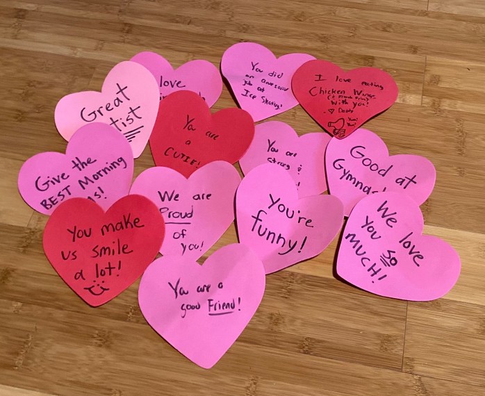 My daughter loved her hearts so much last year, she saved them. We put them into a photo album with the year. When she is having a tough day, we pull out the book. We are planning on adding 14 hearts each year, as long as we do it. By the end she’ll have a nice keepsake to look back on.