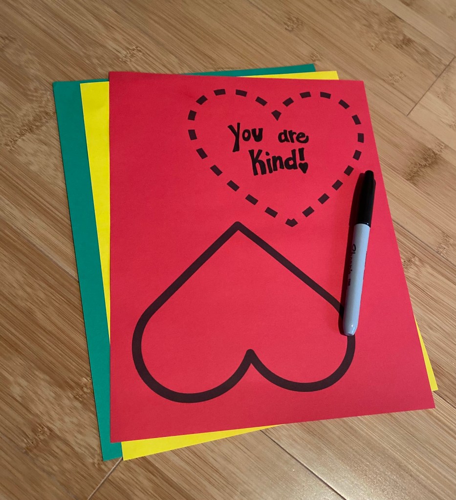 This year my daughter has requested to make hearts for our bedroom door too. I’ll work with her to make hearts to put on my husbands office door and my husband will work with her to make hearts for me on our bedroom door. It can be a whole family activity! For larger families, take turns placing hearts on each other’s doors. Divide the family member total by 14, if not even, parents can complete more hearts.