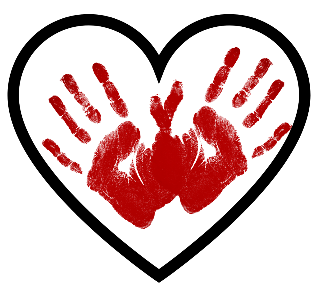 Once hand is completely covered in paint, tilt their hand and place inside half of heart. Press down firmly on top of their hand.
