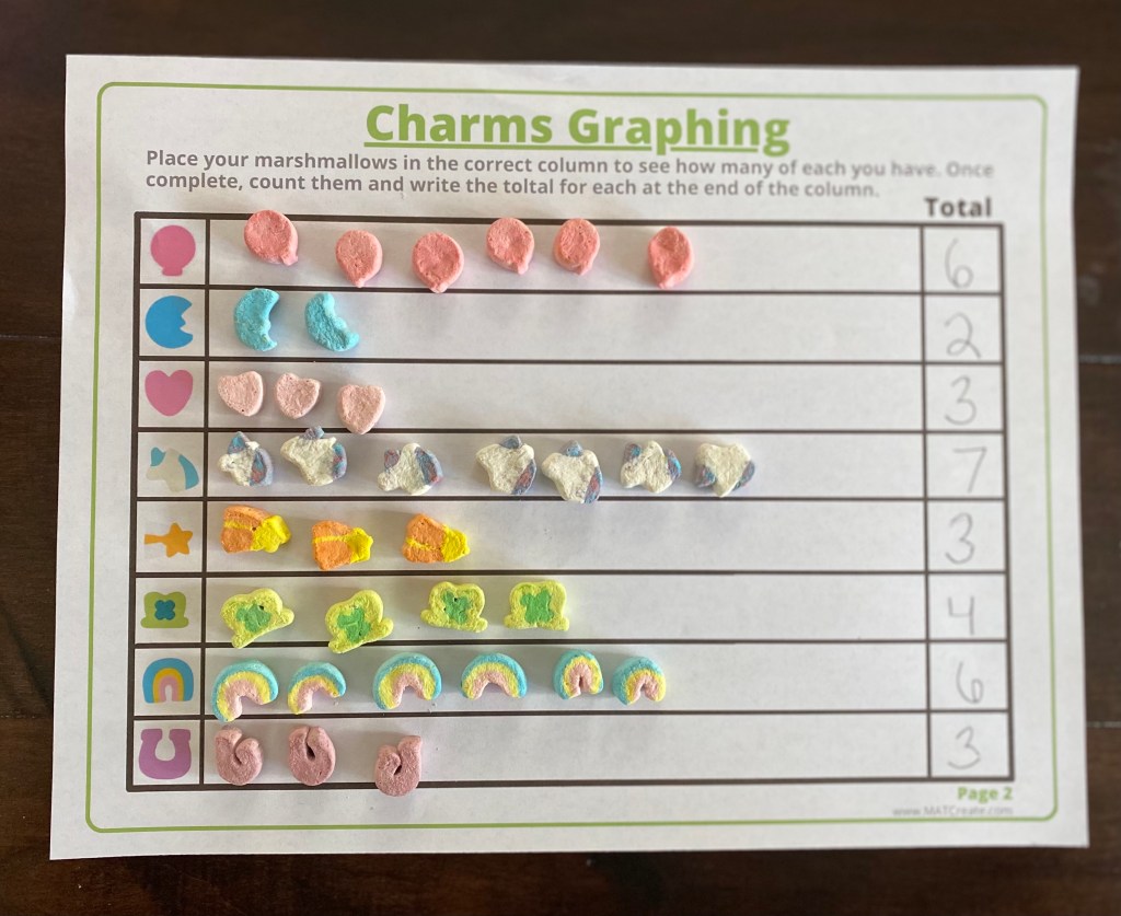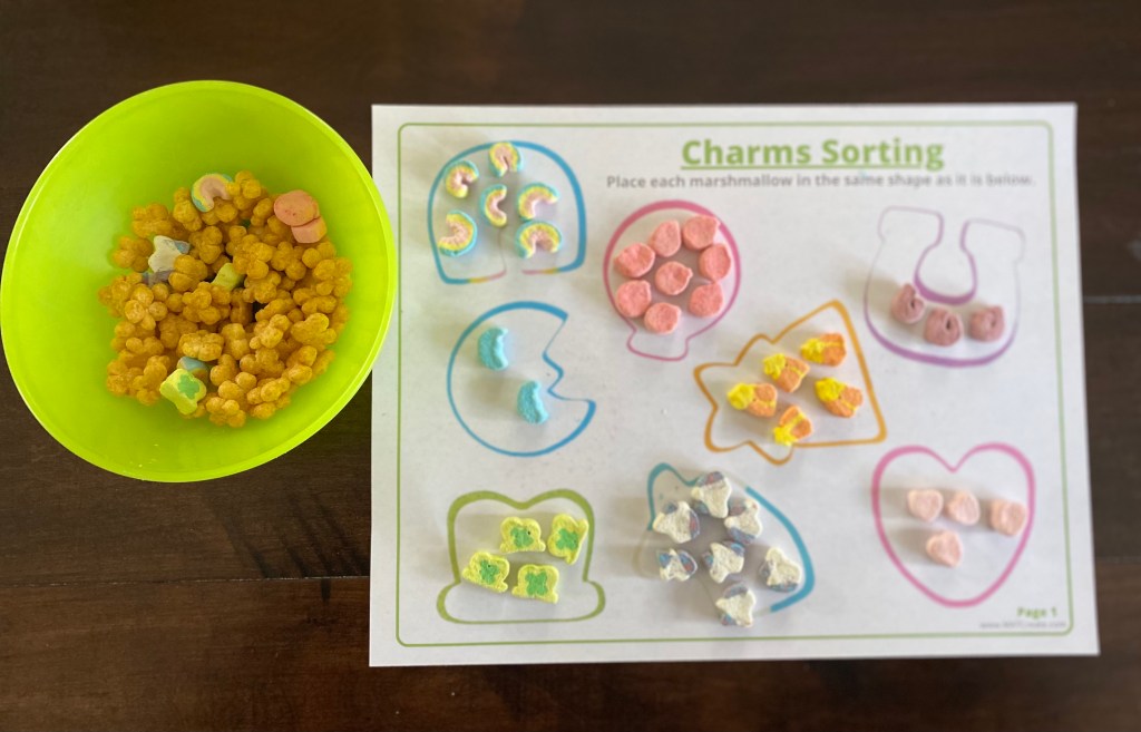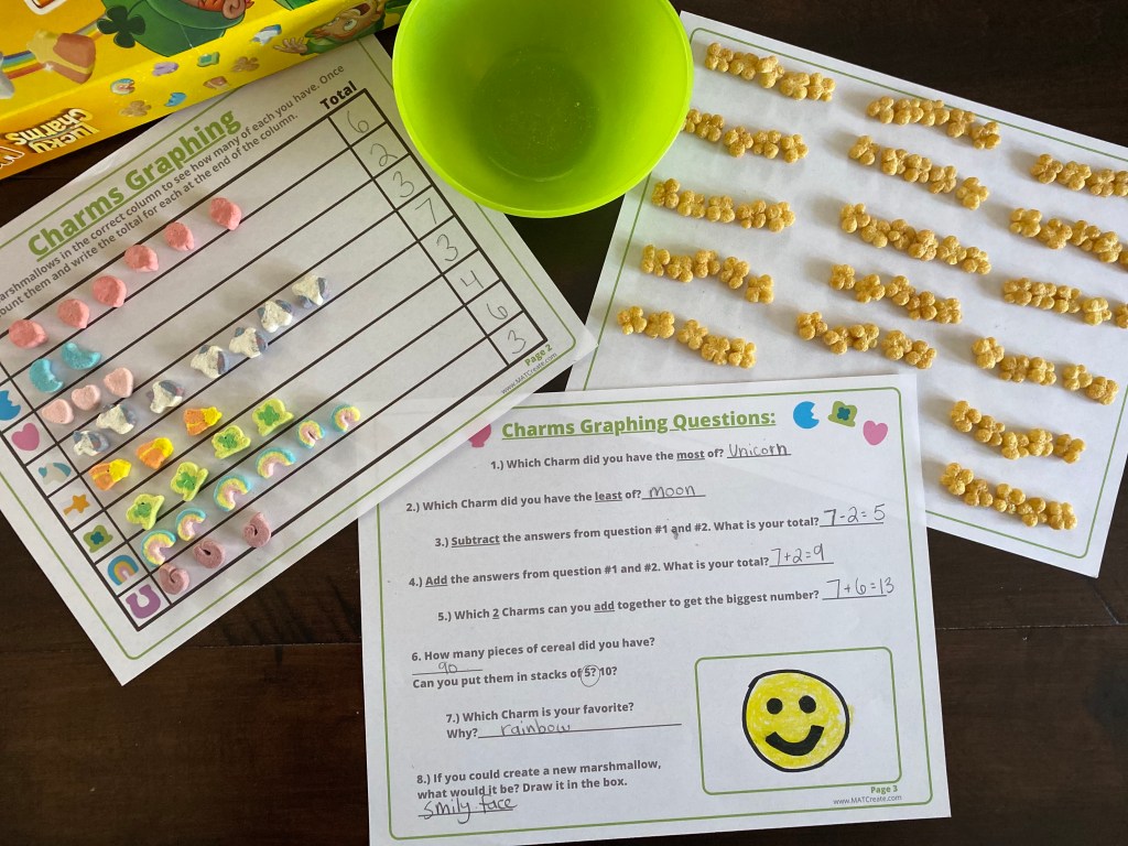 What cereal do you buy/eat in March? Lucky Charms of course! Have fun with your cereal before you eat it! Check out the activities below: