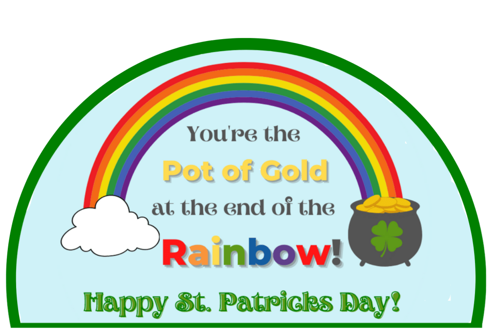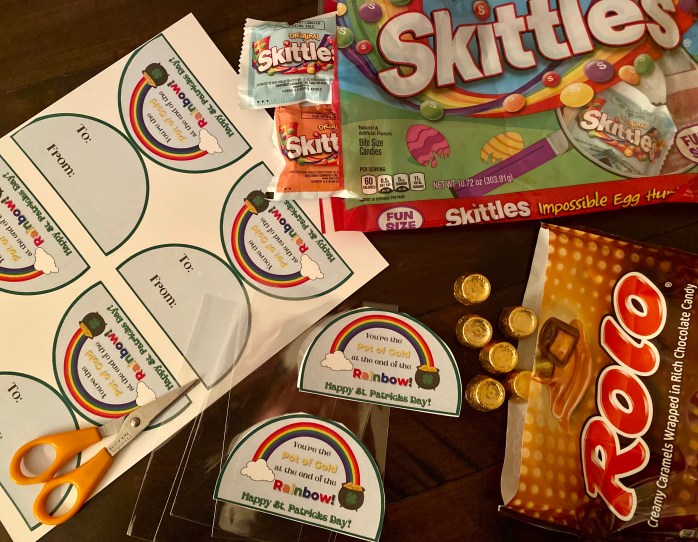 Be a little Leprechaun and surprise your friends or family with a sweet St. Patrick’s Day gift. The Skittles represent a rainbow and Rolos are the gold at the end of the rainbow.