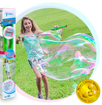 1.) Giant Bubble Wand: comes with a bubble solution. Place solution in a bucket and dip wand into it, pull out and run, a large bubble forms. Fun activity to do with a group of kids. We made them with our neighborhood and at a birthday party. Run out of bubble solution? Make your own.