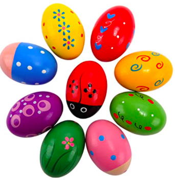 3.) Egg shakers– I loved watching my daughters reaction the first time she figured out how to shake them. Then, they were endless fun and entertainment. Made of wood and colorful designs, they’ll be sure to love! Non-toxic paint- just in case they go into a mouth.