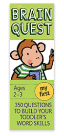 2.) My First Brain Quest– I remember these as a child and enjoyed them, so it was a no brainer to get for my daughter. The questions are in picture form and the adult does the asking. They help your child become familiar with everyday objects and animals. Much nicer than flash cards. Also have Brain Quest for Threes, Brain Quest for Preschool, and Brain Quest for Kindergarten. These are great to bring along to dinner or when waiting in lines for easy entertainment.