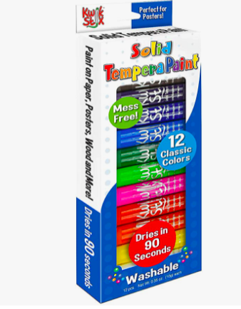 5.) Tempera Paint sticks: Another great way to paint without the big mess. Put out kraft paper and let them create! Washable, nontoxic, dries in 90 seconds.