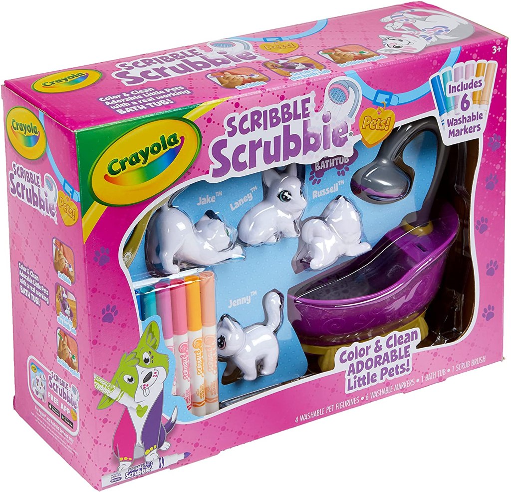7.) Crayola Scribble Scrubbie Pets Color and customize your pets with washable markers, then wash them and start again. My daughter’s favorite part was putting the animals in the bathtub, turning on the shower, and then scrubbing them. To get super clean, throw in the dishwasher top rack.