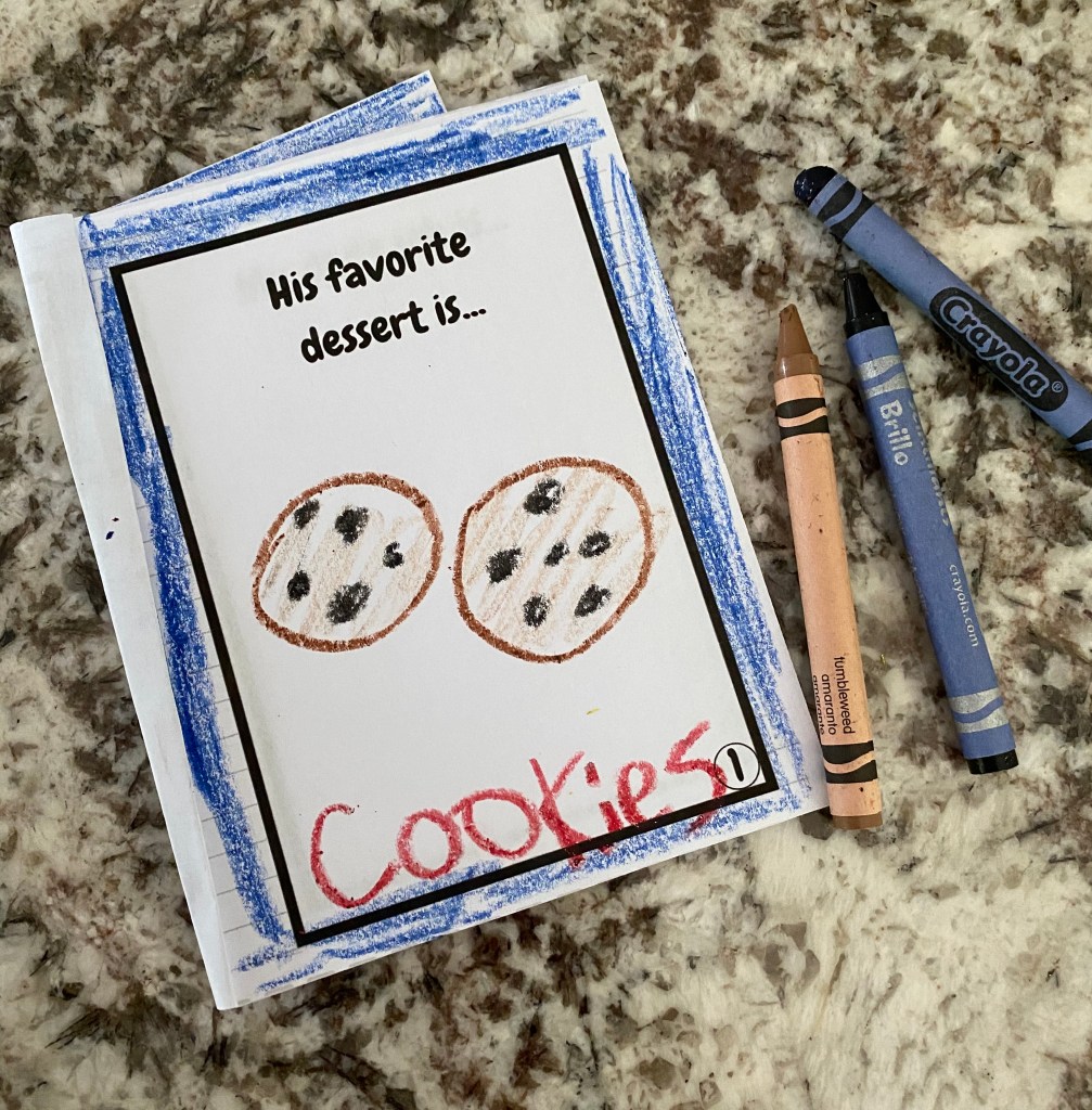 Last year we did a questionnaire. This year I decided to mix it up a little and do something very similar, but in a mini book form. I asked mostly different questions from last year. I’ll post that questionnaire soon. This year she is also able to make the illustrations and write out his favorite things too. You can write the answers or if your child is old enough, they can.