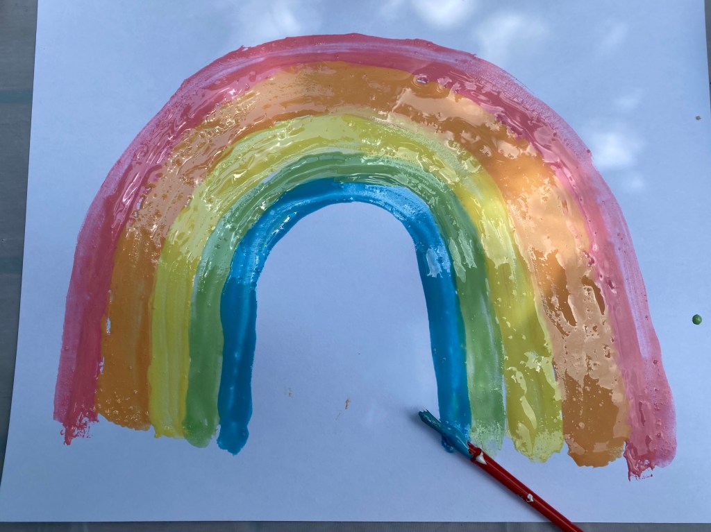 With the left over paint, we painted on cardstock paper. To add texture we used sprinkles.
