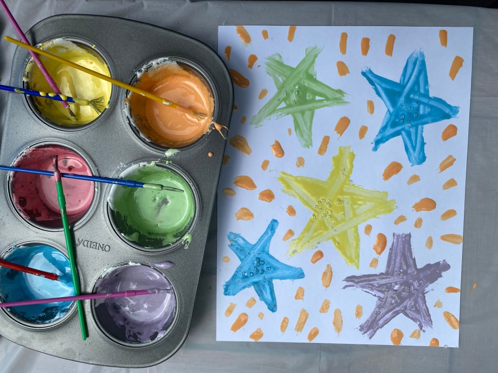 Make cookie decorating into an art project! Then with the left over paint create your own masterpieces on paper.