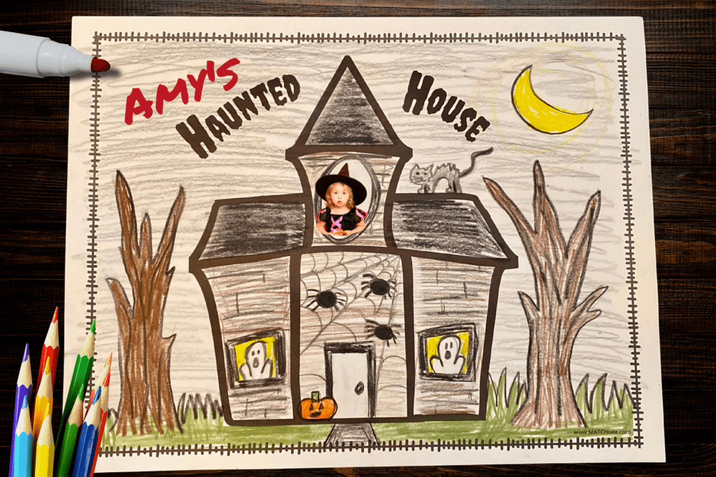 1.) Color! Color the Haunted House. You can add more spooky things on outside of it too.