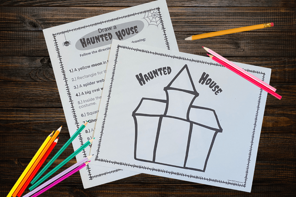 It’s that spooky season again, which means it’s time to draw a Haunted House! Happy Halloween. This activity is great because it enforces following directions, reviews shapes, & colors- all while having fun creating.