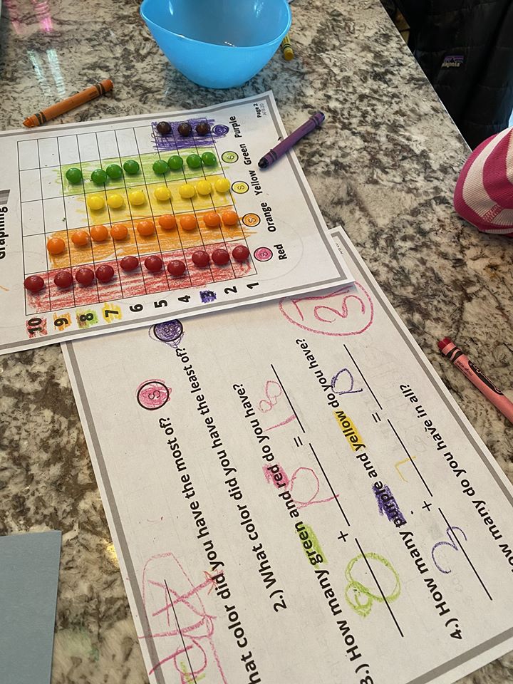 Grab a bag of Skittles and let the fun begin! After sorting, we counted the skittles in each circle & wrote the amount next to it. See example below. If more than 10, eat the extra! A yummy treat for working hard.While looking at… Continue Reading “SKITTLES MATH FUN”