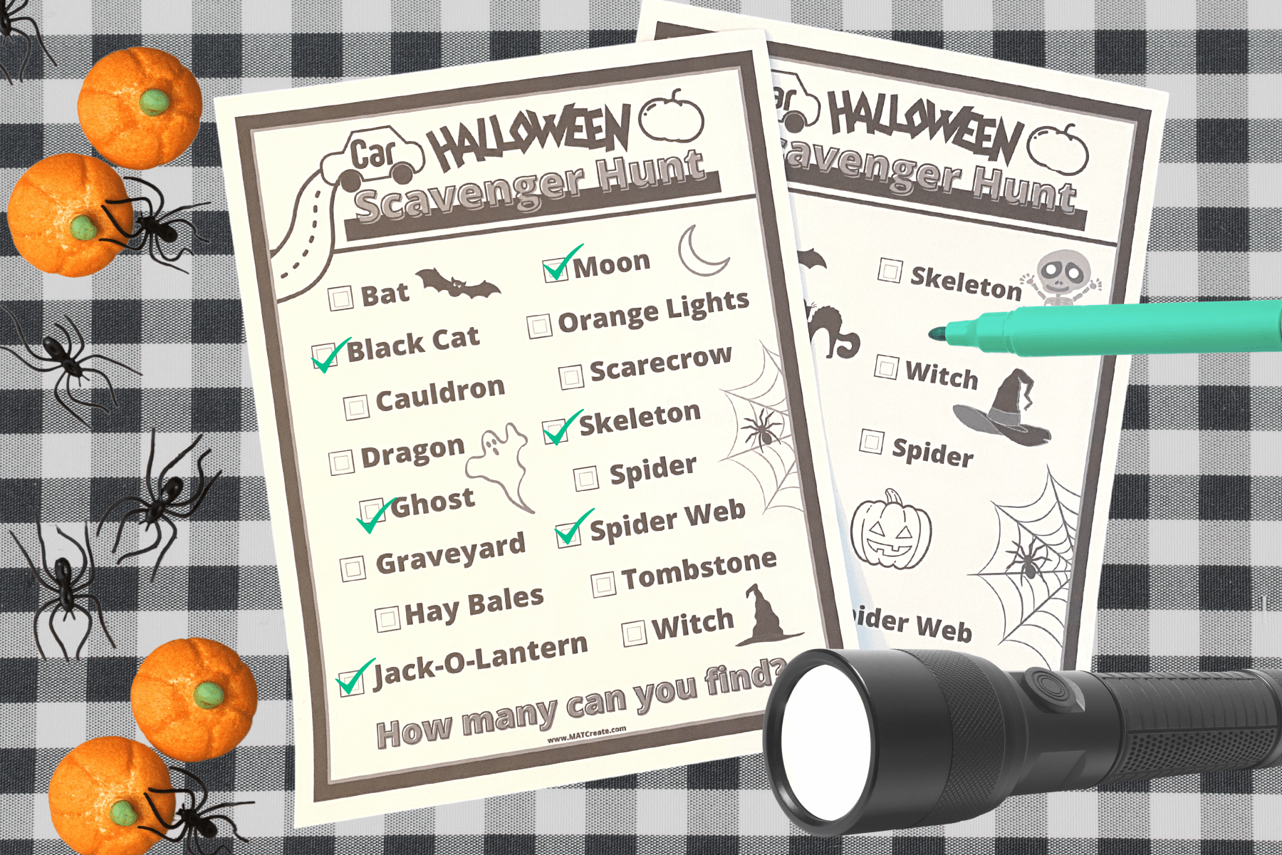 For a fun family activity- jump in the car and go on a Halloween Scavenger Hunt! Have a competition to see who can find the most on the list or work together. There are 2 versions. One copy is for younger kids (more simple… Continue Reading “HALLOWEEN CAR SCAVENGER HUNT”